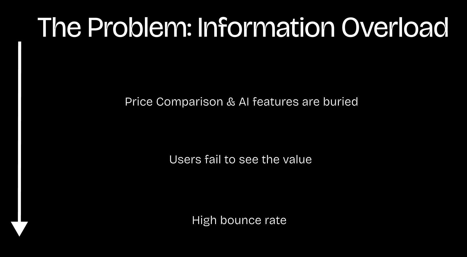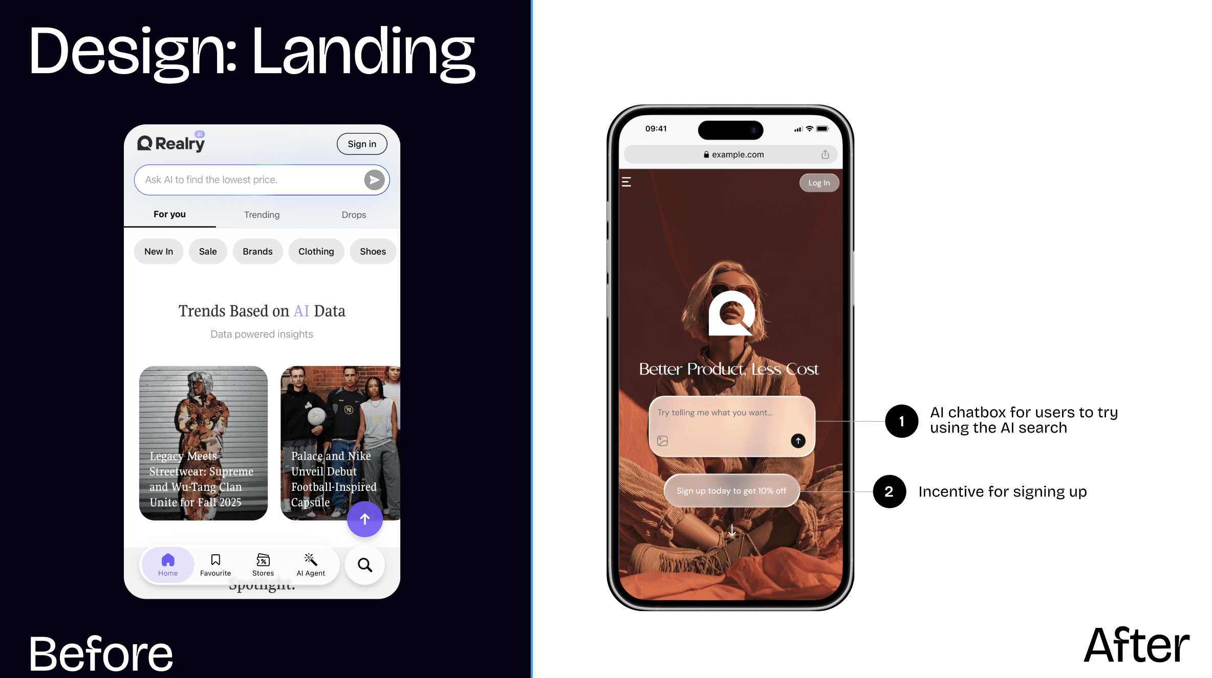 The AI-powered search—the platform's core strength—was buried below the fold.