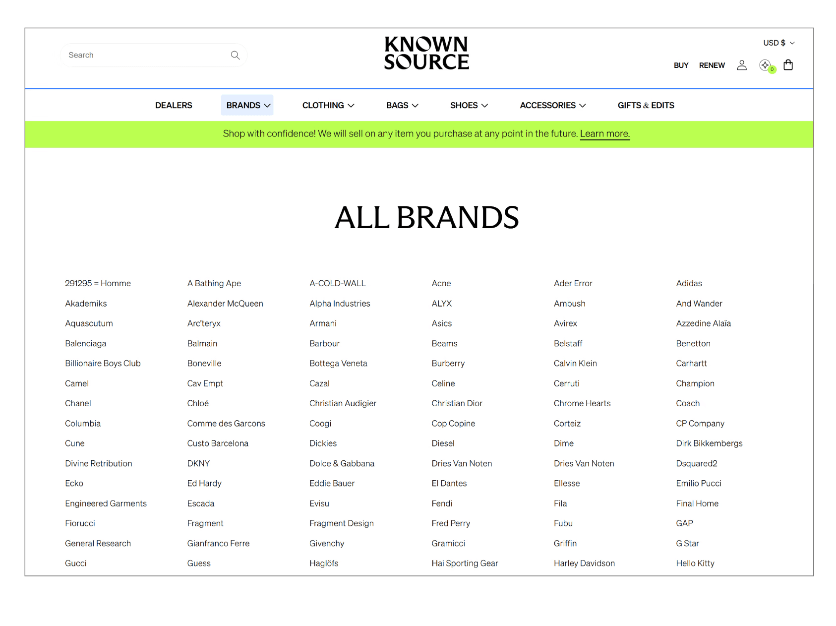 Clear Navigation for brands directory with filters and alphabetical order brand categorization